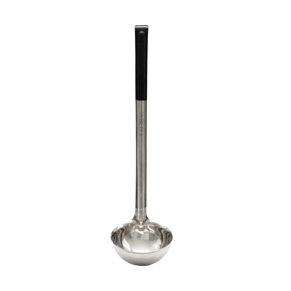 Cucharón de acero inoxidable con mango negro 6 oz