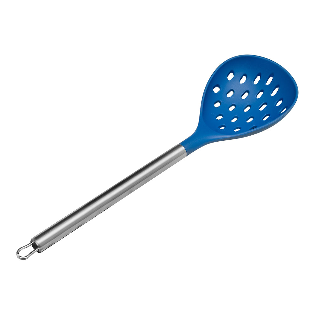 La Espumadera de acero y punta de silicón varios colores ATU05G es un utensilio resistente y funcional, fabricado con acero inoxidable de alta calidad y una punta de silicón suave que protege tus utensilios antiadherentes mientras cocinas.