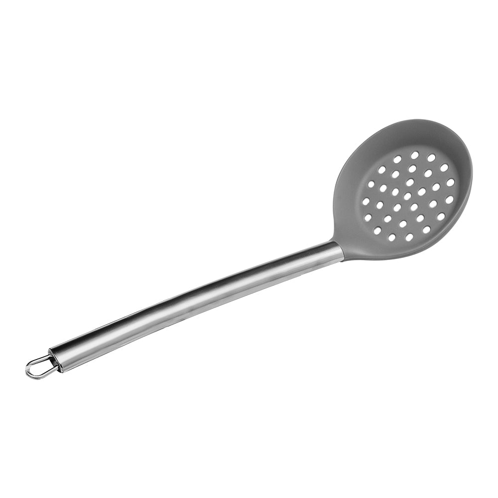 La Espumadera de acero y punta de silicón varios colores ATU06F es un utensilio resistente y funcional, fabricado con acero inoxidable de alta calidad y una punta de silicón suave que protege tus utensilios antiadherentes mientras cocinas.