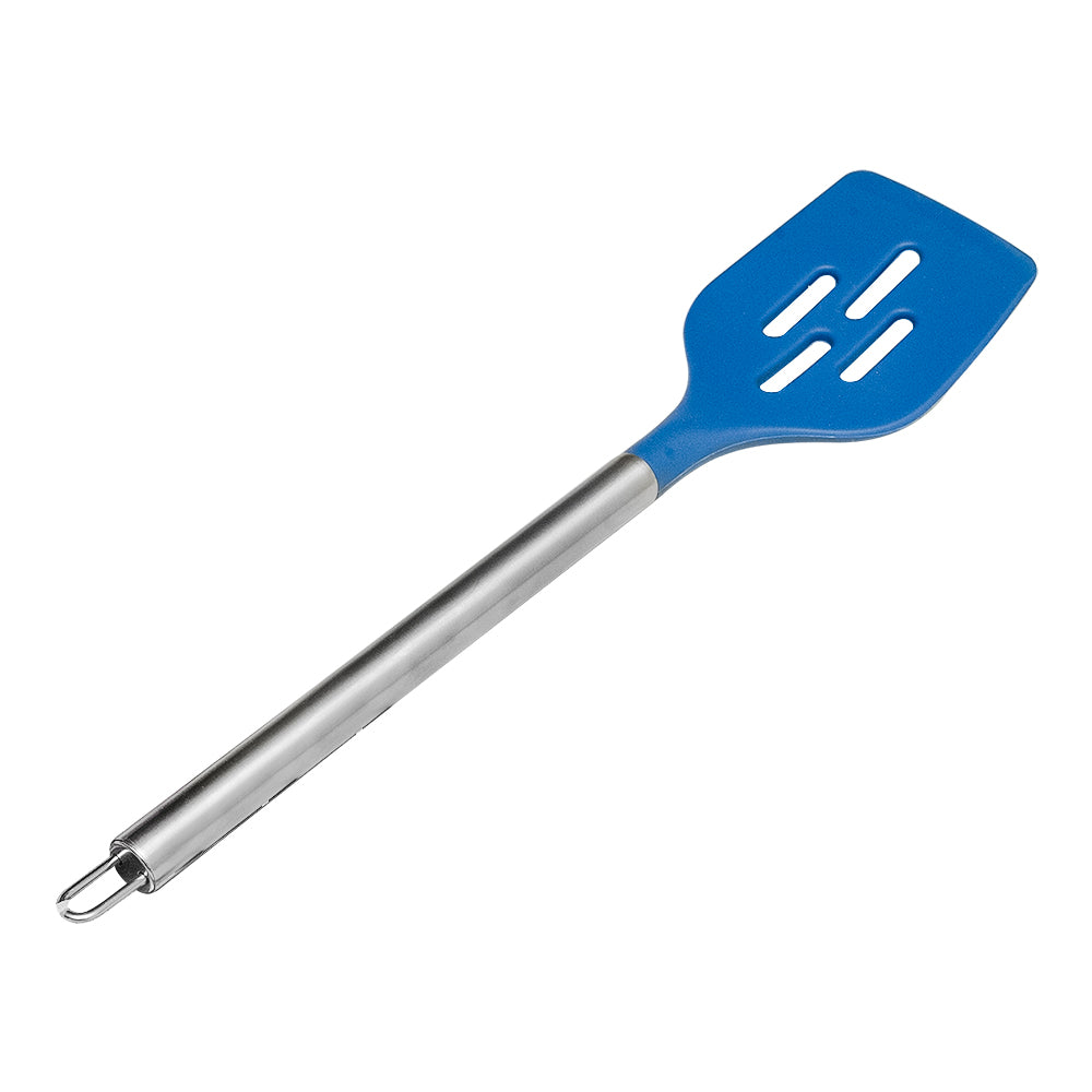 El Volteador ranurado de acero y punta de silicón varios colores ATU05A es un utensilio robusto y funcional, fabricado con acero inoxidable de alta calidad y una punta de silicón suave que protege tus utensilios antiadherentes mientras cocinas.